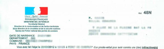 La lettre 48N est une lettre envoyée par le ministère de l’Intérieur, lorsque qu’un conducteur en période probatoire perd trois points ou plus après une infraction. Cette lettre oblige le conducteur à suivre un stage de sensibilisation à la sécurité routière sous quatre mois, en échange, un remboursement de l’amende liée à l’infraction est possible sous deux semaines (la demande de remboursement doit être envoyée au Trésor Public).